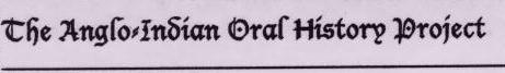 The subjects of the Anglo-Indian Oral History Project will be members of the intemational Anglo-Indian community, defined for this purpose as individuals of mixed heritage, born in India, and descended from persons of British, European or other non-Indian origin. It is expected that most of the subjects of this oral history now live outside India (United States, Canada. Australia, England).